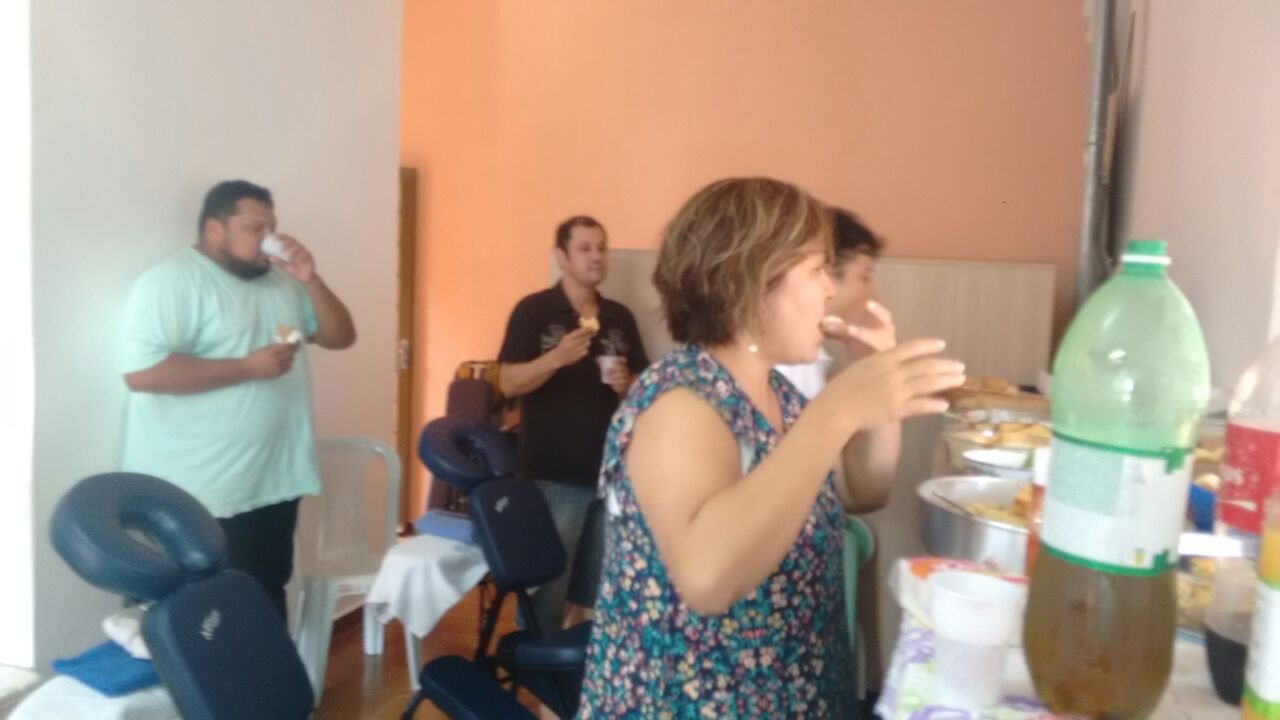 Comida, bebida (refrigerante e suco é claro), muito papo, e compartilhar massagem. Alunos e ex alunos reunidos para matar a saudade e conversar muito a respeito da massoterapia e seus rumos. Uma tarde extremamente agradável.